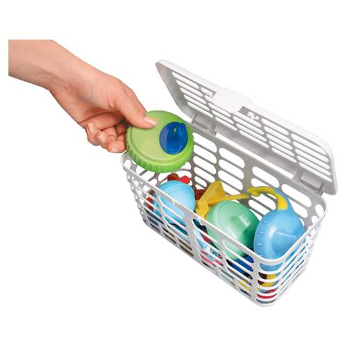 This dishwasher basket is one of the largest capacity baskets available. The top rack is dishwasher safe and fits all washers. The basket thoroughly sanitizes all spill-proof cup parts and small kitchen gadgets, and a removable valve baske... Read more