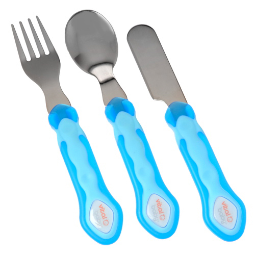 Vital Baby Cutlery Set (87433) - Blue Build confidence and encourage your baby to self-feed safely with this specially sized high grade stainless steel baby cutlery set. Large, easy to grip handles and soft finger and thumb locators help baby learn... Read more