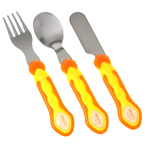 Vital Baby Cutlery Set (87435) - Orange Build confidence and encourage your baby to self-feed safely with this specially sized high grade stainless steel baby cutlery set. Large, easy to grip handles and soft finger and thumb locators help bab... Read more