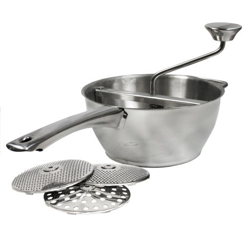 Great for sauces, purees, soups, jams, jellies, mashed potatoes, baby foods, and spätzle. More Information Includes 3 stainless steel milling discs that prevent pulp and skins from slipping through (2 mm) fine milling disc (3 mm) medium milling... Read more