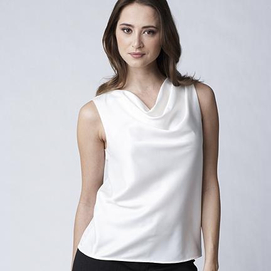 A drape neckline top never looked so feminine and chic! Ellen Tracy creates a beautiful top that can be used for work or for a night out. 97% polyester, 3% spandex Machine wash Drape neck line Sleeveless Back has black lace detail Front drap... Read more