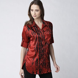 A gorgeous look with an exotic print, this Ellen Tracy Button Down Boyfriend Shirt exudes femininity with a relaxed look and trendy rolled sleeves. 96% polyester, 4% spandex Machine wash Straight collar Button closures Sleeves roll and secure... Read more