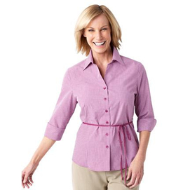A cross between a shirt and a tunic, this gingham top is casual but stylish with its 3/4 sleeves and tie belt. Wear it with jeans or pair it with dress pants; add some bracelets and heels and you've got a smart look for the office. Machine wash i... Read more