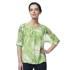 This chiffon blouse has a trendy print, added embellishment and dolman sleeves that add to its modern and chic appearance. 100% polyester Modern leaf print and fresh colours keep your outfit on trend Looser fit through body enhances comfort 3/... Read more