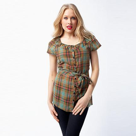 mac & jac® offers affordable, couture-influenced pieces infusing romance and glamour into the everyday life of a modern woman. Casually beautiful. This plaid blouse is long on style with a long cut and a tie waist. Cap sleeves and button details add... Read more