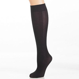 Fashion textured knee high 93% nylon, 7% spandex Hand wash. Do not use bleach. Drip dry