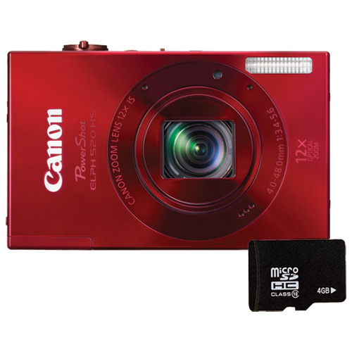 Canon® PowerShot® ELPH 520 HS Digital Camera, Red with 4GB SD memory card view