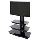 TV stand holds up to 47" flat screen TV Tempered black glass shelves Allows TV to swivel 45 degrees left or right Maximum TV weight: 135 lbs Dimensions: 41" W x 20 1/2" D, 54" H