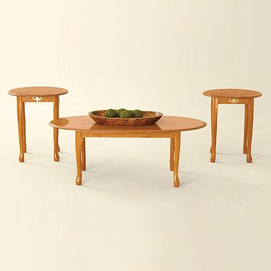 sturdy, wood product construction with solid wood legs one 42'' w. x 21'' d. x 15 1/2'' h. coffee table two 18'' w. x 18'' d. x 20 1/2'' h. end tables some assembly required