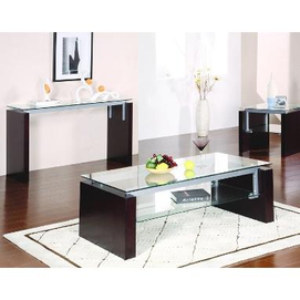 Only at Sears! Tapered legs Glass top with solid wood base Espresso Finish Some assembly required Cocktail Table 48"W x 24" D x 17" H End Table 24"W x 24" D x 21" H Sofa Tail 48"W x 18" D x 29 H