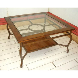 Only at Sears! Traditional styling solid wood/wood veneers Tempered glass Decorative shaped legs Medium oak finish 36"W x 36"D x 20"H