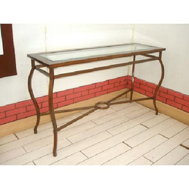 Only at Sears! Traditional styling solid wood/wood veneers Tempered glass Decorative shaped legs Medium oak finish 50"W x 18"D x 32"H