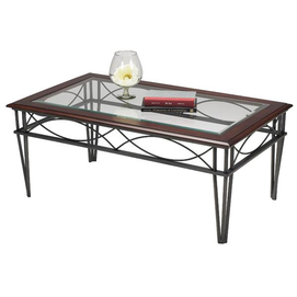 Traditional styling Powder coated finish on base Cherry veneer with old spice finish Features inset tempered clear polished glass 25"d x 43"w x 18"h