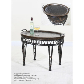 End table with removable tray Black base with espresso top Traditional style Includes tray with handles 23.75"L x 33.50"W x 25.00"H Accessories not included