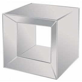 Side table made completely out of mirror with an opening in the center. Side table Completely made of mirror Opening in the center Clean with soft damp cloth 21"x21"
