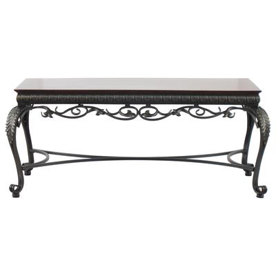 This elegant traditional style coffee table will go well in any living room. Note the decorative metal apron and curved metal legs. Sturdy metal frame construction in Navarre Gold finish and durable wood top in Antique Walnut finish give this ite... Read more
