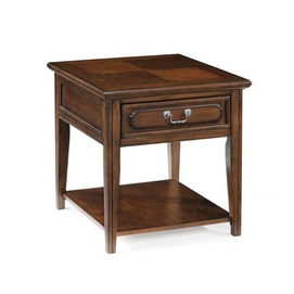 Traditional style Distressed toffee finish Some assembly required Tables are constructed of hardwood solids with Cherry veneers Distressed toffee finish The end table, regular cocktail table and sofa table all feature one botto... Read more