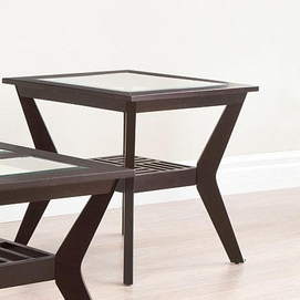 Save each when you buy any 2 or more 'Gibson' Tables Contemporary style Wood and wood veneers Tempered glass inserts Espresso finish Some assembly required