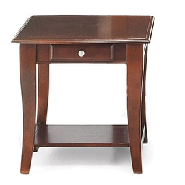 Traditional Style Cherry Finish Tabletop drawer and lower-shelf storage Wipe clean Constructed from solid wood and wood veneers Some assembly required 22"W x 26"D x 22"H