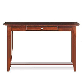 Traditional Style Cherry Finish Tabletop drawer and lower-shelf storage Wipe clean Constructed from solid wood and wood veneers Some assembly required 48"W x 16"D x 29"H