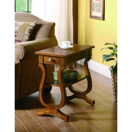 Traditional styling with an updated casual appeal Wood and wood veneers Medium Cherry finish 1 drawer Assembly required 12" W x 24" D x 24" H