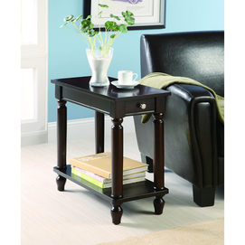 Traditional styling with an updated casual appeal Wood and wood veneers Cappuccino finish 1 drawer Assembly required 12" W x 24" D x 24" H