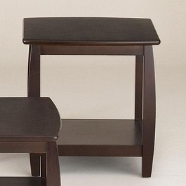Save when you buy any 2 or more 'Noble' Tables Features open bottom shelf for display or additional storage Constructed from solid woods and wood veneer Dark walnut finish Elegantly curved legs 24"d. x 24"w. x 24" h.