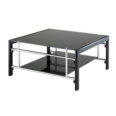 Square Cocktail Table features contemporary “Gloss Black” frame with inset “Gloss Silver” grid side panels, 10 mm Black glass top, and 8 mm Black glass shelf. Folding assembly for the frame and sides; drop glass into place. Contemporar... Read more