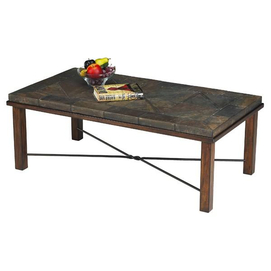 Traditional styling Asian hardwood, slate and metal Solid wood with walnut finish Each item has square legs 26"d. x 48"w. x 17.25" h.