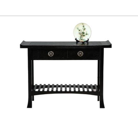 Asian inspired style with heavy duty tops. 2 working drawers with antique Brass hardware and bottom shelf means lots of storage. Compact size means it can fit most spaces. Made of select solids and ash wood grain veneers in an ebony colour. Asia... Read more