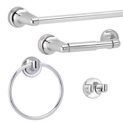 Classic Style, 4 Piece Polished Chrome Bath Set, includes 24" Towel Bar, Robe Hook, Towel Ring and Paper Holder. Easy to install. Lifetime Warranty. 4 Piece Polished Chrome Bath Set. Includes 24" Towel Bar, Robe Hook, Towel Ring and Paper Holder.... Read more