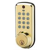 Electronic door lock feature a keypad and remote Made with a polished-brass finish Deadbolt lock