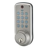 Electronic door lock features a keypad and remote Made with a satin-nickel finish Deadbolt lock
