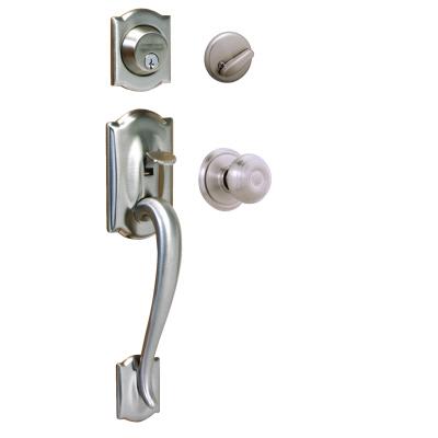 The Camelot handelset paired with a Georgian knob in Satin Nickel is ideal for your front door, the place where security and style meet. To ensure your home’s security, all Schlage front entry handlesets are precision-engineered, easy to install and... Read more