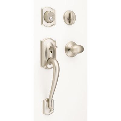 The Camelot handelset paired with a Siena knob in Satin Nickel is ideal for your front door, the place where security and style meet. To ensure your home’s security, all Schlage front entry handlesets are precision-engineered, easy to install an... Read more