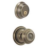 Schlage entry Georgian 1/2 ball knob and maximum security deadbolt combination in an antique brass finish Triple-option faceplates are standard Square spindle design for easy opening Universal latch fits both 2-3/8 or 2-3/4" backset Easy t... Read more