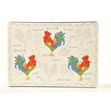 Cork placemat features decorative rooster design Easy to wipe clean with damp cloth Coordinates with PEVA flannel-backed tablecloths