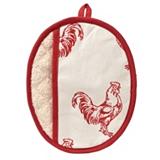 Oval-shaped pot holder 100% cotton fabric outer shell 100% new cotton filling with natural terry lining Features a hand pocket with cotton-sheeting pasting Machine washable Hanging loop