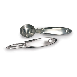 OXO Good Grips specializes in tools with soft, ergonomic handles for comfortable repetitive use for extended periods. The popular OXO swivel peeler is now offered in a stainless version. the sharp blade peels easily and comes with a built-in eyer... Read more