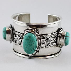 ''Cocoa Jewelry'' - Jewellery that makes a statement for less! Silver plated zinc with genuine turquoise Magnetic closure Dimensions: 2.3" diameter/1.3"height