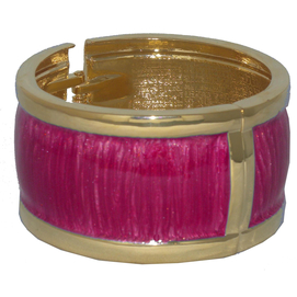 This supercute Jessica bangle showcases girly fuchsia and shimmering gold tones. Wear one as a statement piece or stack them up high for a total arm party! Base metal construction with vibrant enamel Non-stretch Hinged closure Pairs beautifull... Read more
