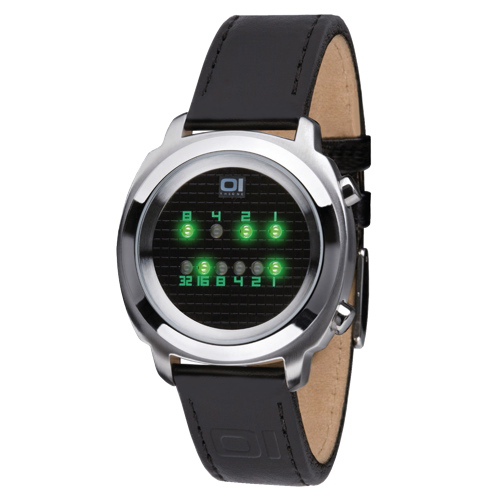 OverviewDetails and SpecsThis stylish, handsome watch features a custom shaped stainless steel case and comfortable leather wristband, hardened mineral crystal lens, and 10 LED lights that display the time using a binary method. Mor... Read more