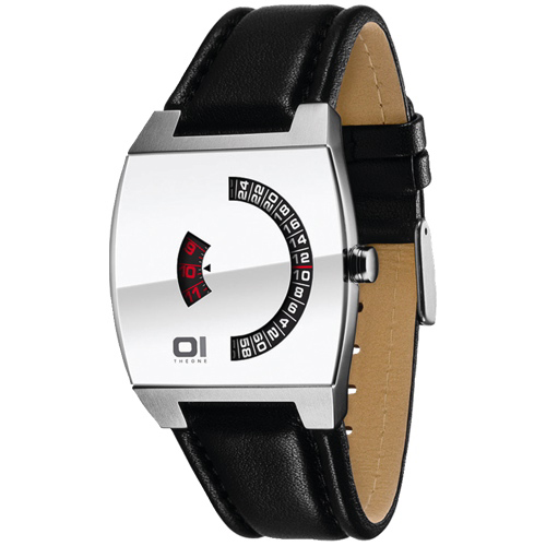 01THEONE Men's Leather Turn Disc Watch (AN03G02) - Black/Silver view