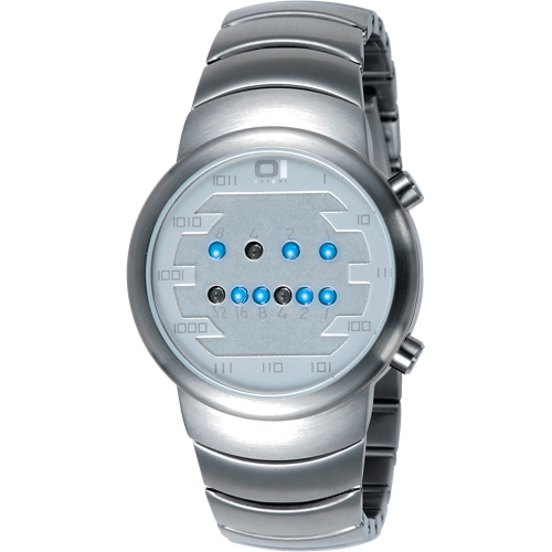 OverviewDetails and SpecsThis watch features a modern, eye-catching design that features a custom shaped stainless steel case and wristband, as well as a hardened mineral crystal lens with a white dial. It uses vivid LED lights in a unique binar... Read more
