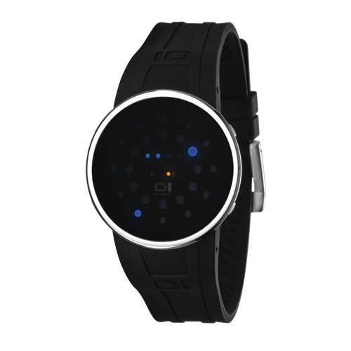 OverviewDetails and SpecsThis distinctive timepiece blends handsome style with a unique orbital time display system. It features a stainless steel case, polyurethane strap, hardened mineral crystal lens with distinctive black dial, and vivid LE... Read more