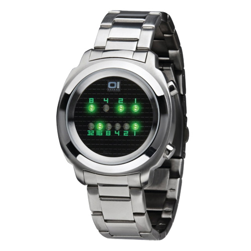 OverviewDetails and SpecsThis stylish, handsome watch features a custom shaped stainless steel case and wristband, hardened mineral crystal lens, and 10 LED lights that display the time using a binary method. More Information The binary forma... Read more