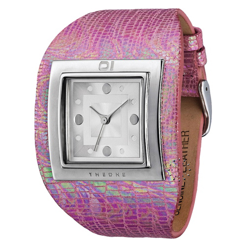 OverviewDetails and SpecsThis watch blends minimalist fashion with easy practicality, featuring an attractive, slim case that's neatly fastened to the top and bottom of a wide leather wristband with fashionable pink crackle finish. The square cloc... Read more
