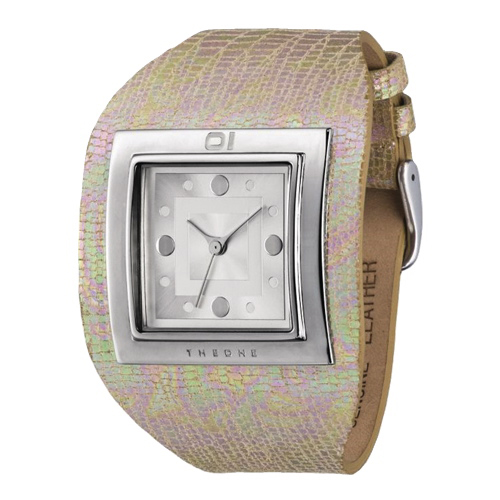 OverviewDetails and SpecsThis watch blends minimalist fashion with easy practicality, featuring an attractive, slim case that's neatly fastened to the top and bottom of a wide leather wristband with fashionable beige crackle finish. The square clock... Read more