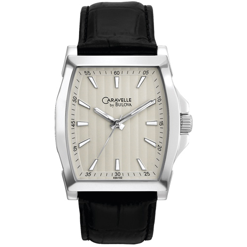 Caravelle Men's Watch (43A102) - Black Leather Band/Stainless Steel Face view
