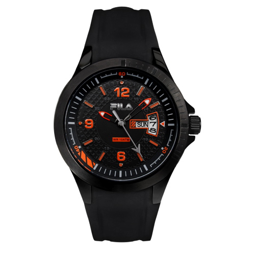 Fila Casual Mens Watch (38-013-003) - Black Band / Black and Orange Dial view